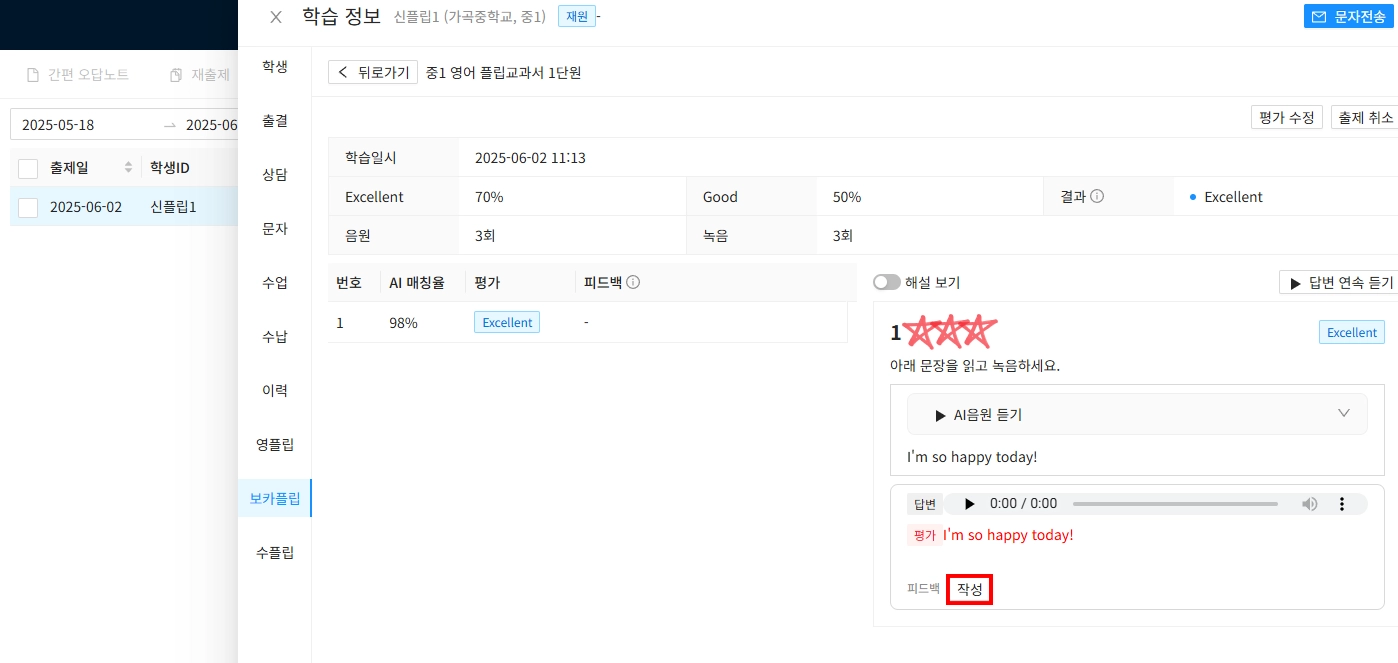 β’ νμ λ΅μμ λ£κ³ βμμ±βμ ν΄λ¦νμ¬ νΌλλ°±μ μμ±ν΄μ£ΌμΈμ.